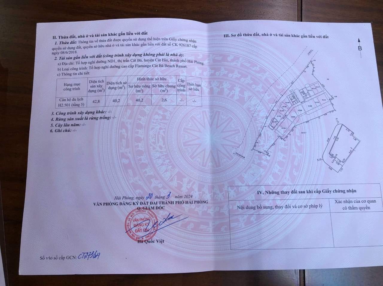 Người mua căn hộ được cấp sổ hồng giấy chứng nhận theo quy định của căn hộ du lịch và có thời hạn 50 năm kể từ năm 2023. Sở TNMT Phú Thọ đã có văn bản trả lời trực tiếp Chủ đầu tư nội dung này tại công văn 2986/TNMT-QLĐĐ ngày 09/11/2023.